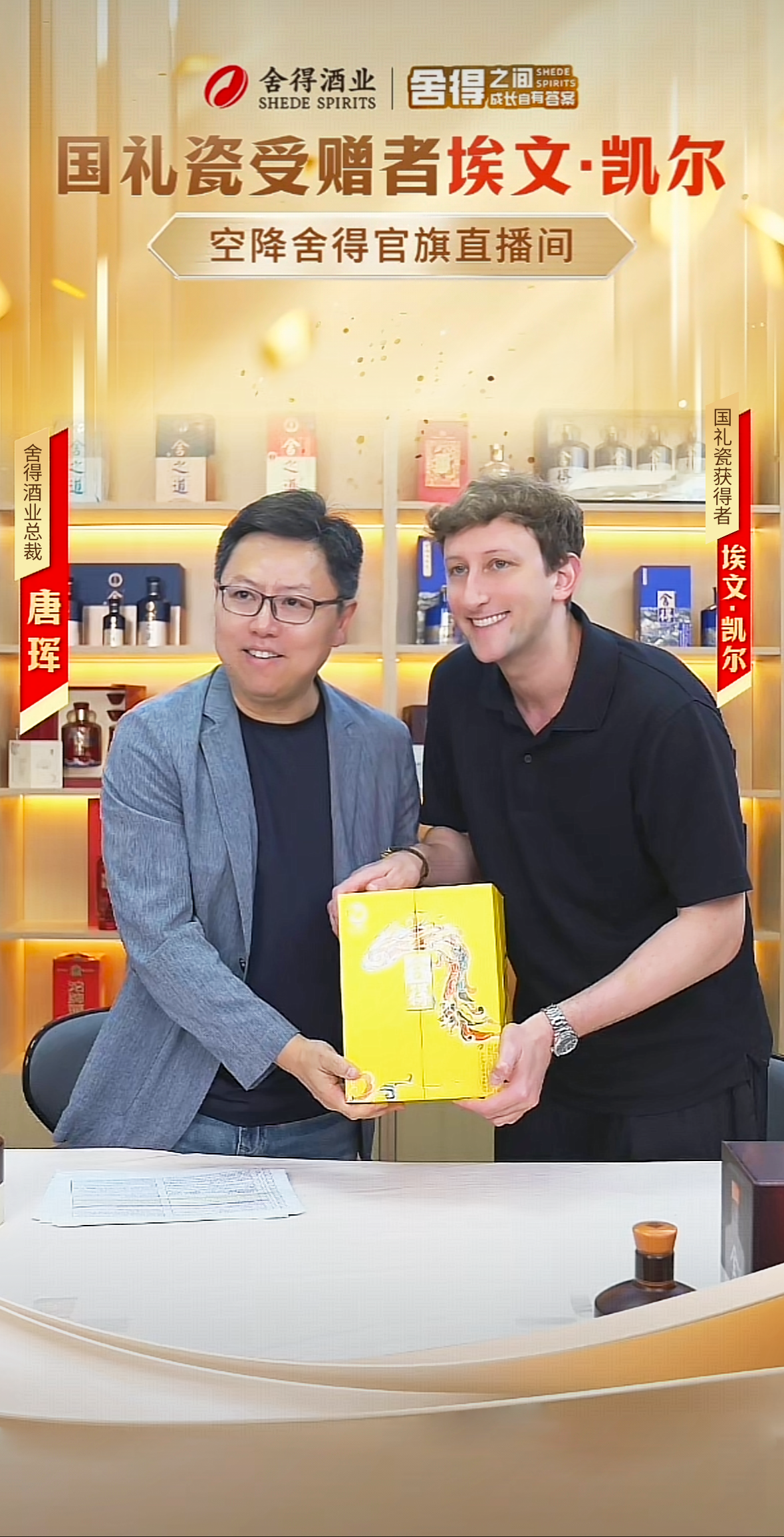 直播尾声之际,埃文·凯尔还获赠了象征着祥瑞与新生的特殊礼物——舍得蛇年生肖酒。今年是埃文·凯尔的本命年,舍得酒业以生肖酒传递了吉祥如意的美好祝福。通过此次与舍得酒业的深度合作,埃文·凯尔对中国文化也有了更深的体会和触动,并表示要将中国的白酒文化与智慧分享给全世界。